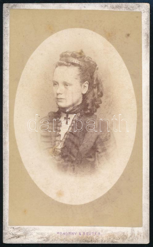 cca 1870-80 Fiatal hölgy portréja, keményhátú fotó Pokorny & Reuter bé... https://www.darabanth.com/de/443-Fernauktion/443.0/Fotografie/Foto~500024/cca-1870-80-Fiatal-holgy-portreja-kemenyhatu-foto-Pokorny-Reuter-becsi-mutermebol-kiss~II2923367