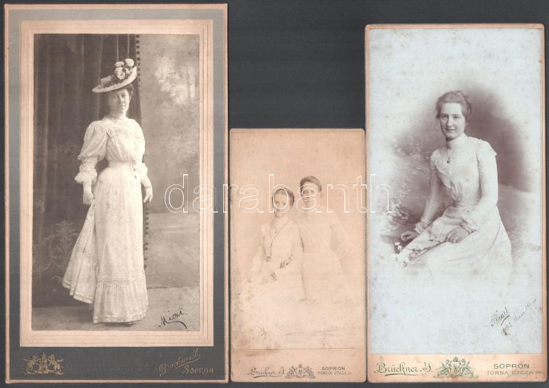 cca 1890-1900 3 db hölgyportré, keményhátú fotók Brückner J soproni mű... https://www.darabanth.com/de/443-Fernauktion/443.0/Fotografie/Foto~500024/cca-1890-1900-3-db-holgyportre-kemenyhatu-fotok-Bruckner-J-soproni-mutermebol-az-egyik-h~II2918240
