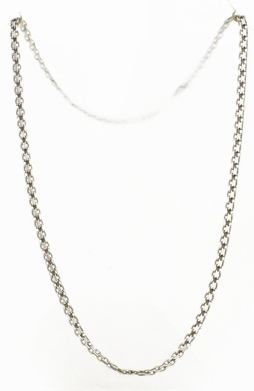 Beschreibung: Ezüst(Ag) fantáziaszemes áttört nyaklánc, jelzett, h: 49,5 cm, nettó: 11,4 g