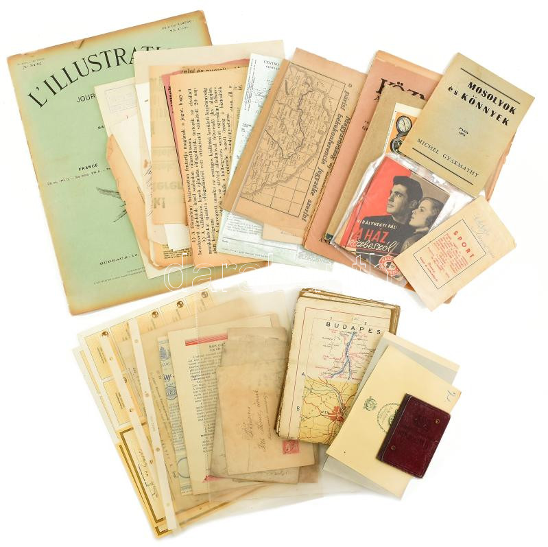 Vegyes papírrégiség: részvények, reklámok, hirdetmények, térképek, stb... https://www.darabanth.com/de/443-Fernauktion/443.0/Kunst-Dokumente-andere-Sammelgebiete/Dokument~500021/Vegyes-papirregiseg-reszvenyek-reklamok-hirdetmenyek-terkepek-stb~II2919761