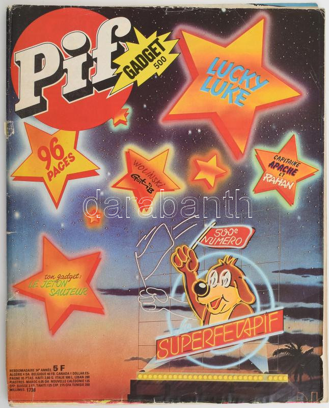 1978 Pif képregény újság.500. száma első lap lejár https://www.darabanth.com/de/443-Fernauktion/443.0/Kunst-Dokumente-andere-Sammelgebiete/Drucksachen~1000005/1978-Pif-kepregeny-ujsag500-szama-elso-lap-lejar~II2921099