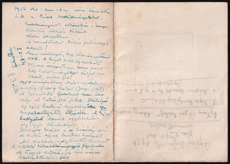 1958 Diákéletünk, humoros "gyászjelentés", beragasztott fényképpel, hátoldalán az '56-os forradalomra vonatkozó kézzel írt feljegyzéssel, hajtva, 27x19 cm