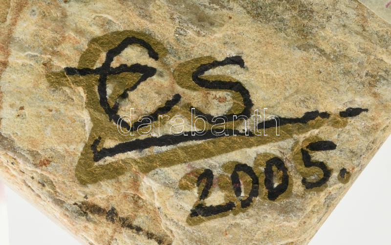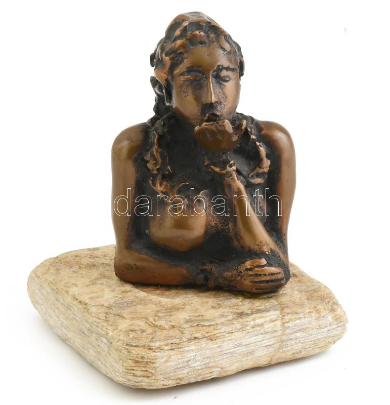 Csóka Zsuzsanna: Tenyérből fújt üzenet. Bronz, kőtalapzaton, jelzett, m: 14,5 cm