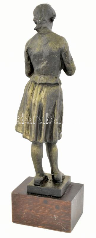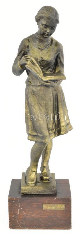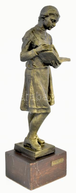 Beschreibung: Olcsai Kiss Zoltán (1895-1981): Olvasó lány. Brozírozott műgyanta, jelzett, fa talapzaton, 36 cm