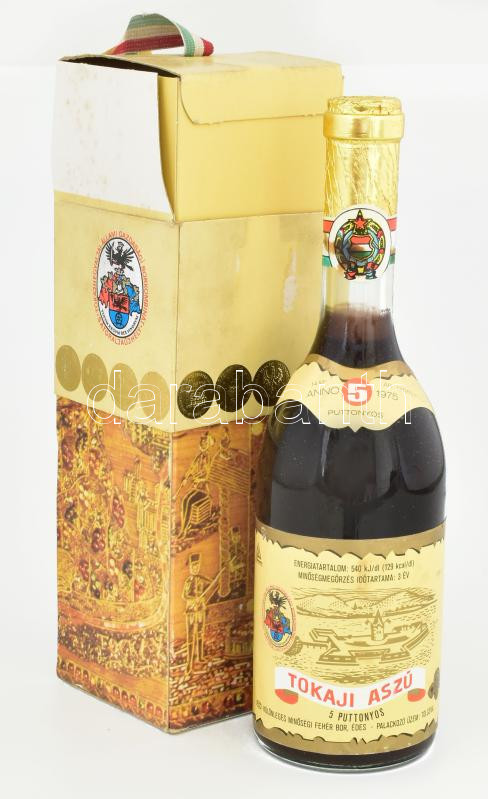 1975 Tokaji aszú, 5 puttonyos, bontatlan palack fehér desszertbor, pap... https://www.darabanth.com/de/443-Fernauktion/443.0/Kunst-Dokumente-andere-Sammelgebiete/Vintage-Weine-Getranke~500018/1975-Tokaji-aszu-5-puttonyos-bontatlan-palack-feher-desszertbor-papirdobozban-0-5-l~II2920853