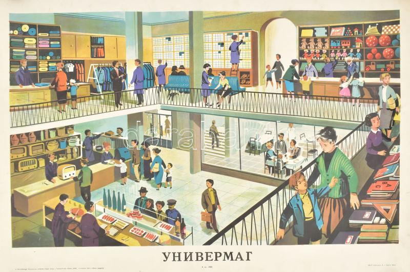 1959 Univermag szocreál bevásárlóközpont reklám. Nagy méretű litografá... https://www.darabanth.com/de/443-Fernauktion/443.0/Kunst-Dokumente-andere-Sammelgebiete/Werbungen~500025/1959-Univermag-szocreal-bevasarlokozpont-reklam-Nagy-meretu-litografalt-nyomat-94x65-cm-S~II2923874