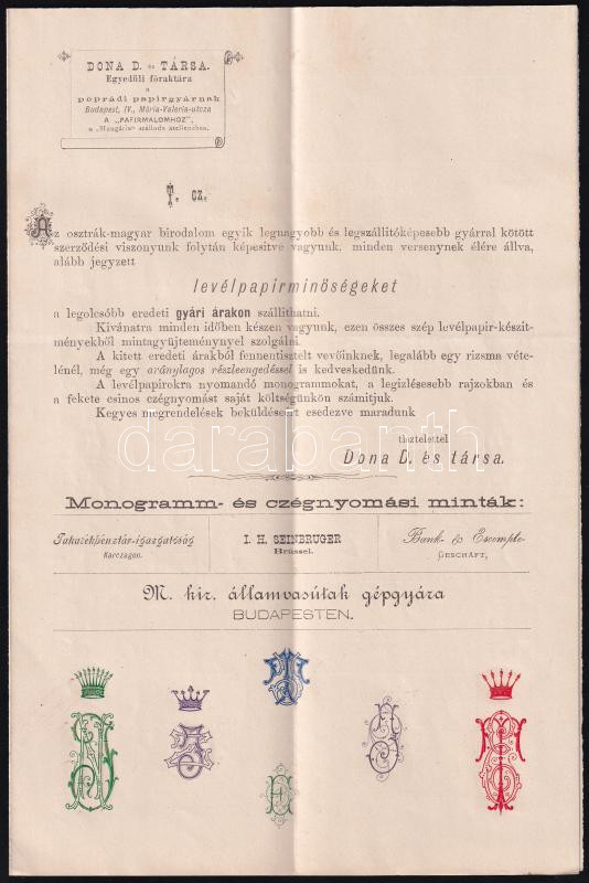 cca 1890 Dona lelvélpapírgyáros reklám nyomtatványa, nyomás mintákkal ... https://www.darabanth.com/de/443-Fernauktion/443.0/Kunst-Dokumente-andere-Sammelgebiete/Werbungen~500025/cca-1890-Dona-lelvelpapirgyaros-reklam-nyomtatvanya-nyomas-mintakkal-4p~II2924941