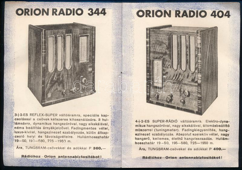 cca 1930 Orion radio 35-36. sz. árjegyzék, fekete-fehér képekkel illus... https://www.darabanth.com/de/443-Fernauktion/443.0/Kunst-Dokumente-andere-Sammelgebiete/Werbungen~500025/cca-1930-Orion-radio-35-36-sz-arjegyzek-fekete-feher-kepekkel-illusztralt-tuzott-papirkC3~II2923639