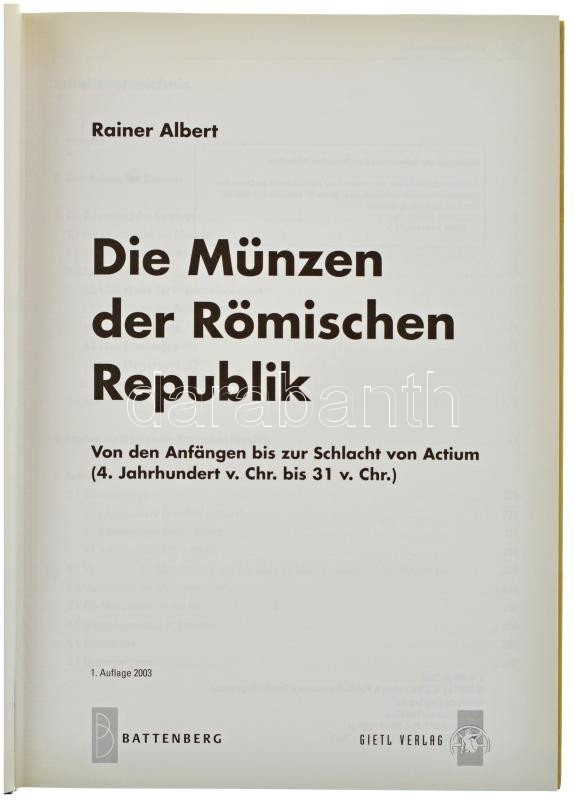Beschreibung: Rainer Albert: Die Münzen der Römischen Republik. Regenstauf, Battenberg, H. Gielt Verlag & Publikationensservice GmbH, 2003. Újszerű állapotban.