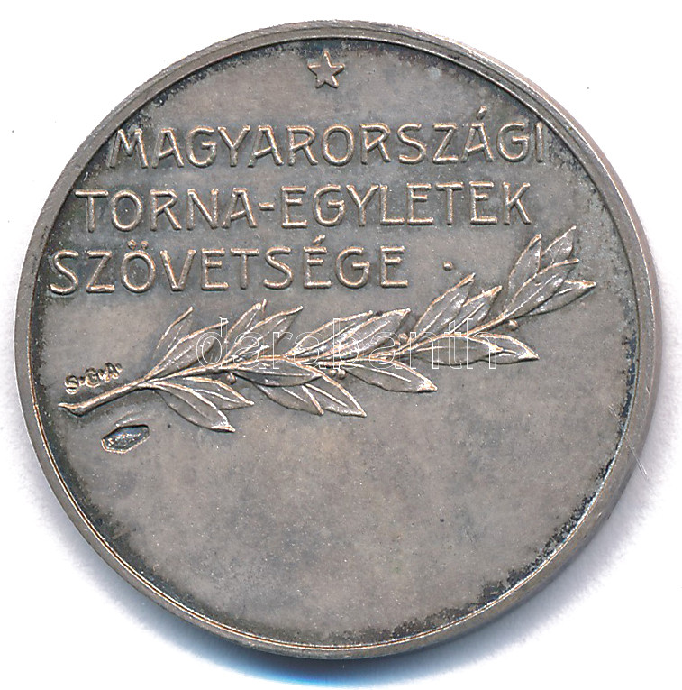 Beschreibung: Damkó József (1872-1955) / Exner Károly (1850-1919) DN "Magyarországi Torna-Egyletek Szövetsége" jelzett Ag emlékérem, hátoldalán "SGA" gyártói jelzéssel (13,32g/0.800/30mm) T:UNC kis patina