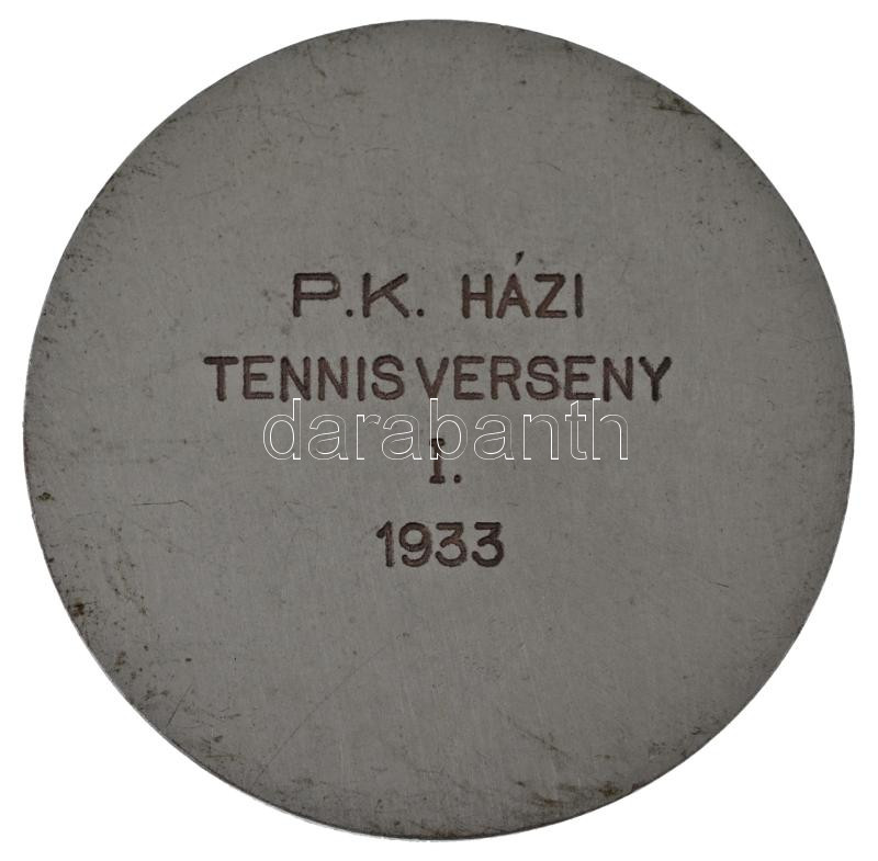 Beschreibung: Matzon Frigyes (1909-1986) 1933. "Pénzintézeti Központ Tisztviselőinek Sportegyesülete 1923" ezüstözött bronz díjérem, hátoldalán "P.K. Házi tennis verseny I. 1933" gravírozással (49mm) T:AU patina, helyenként kopott ezüstözés