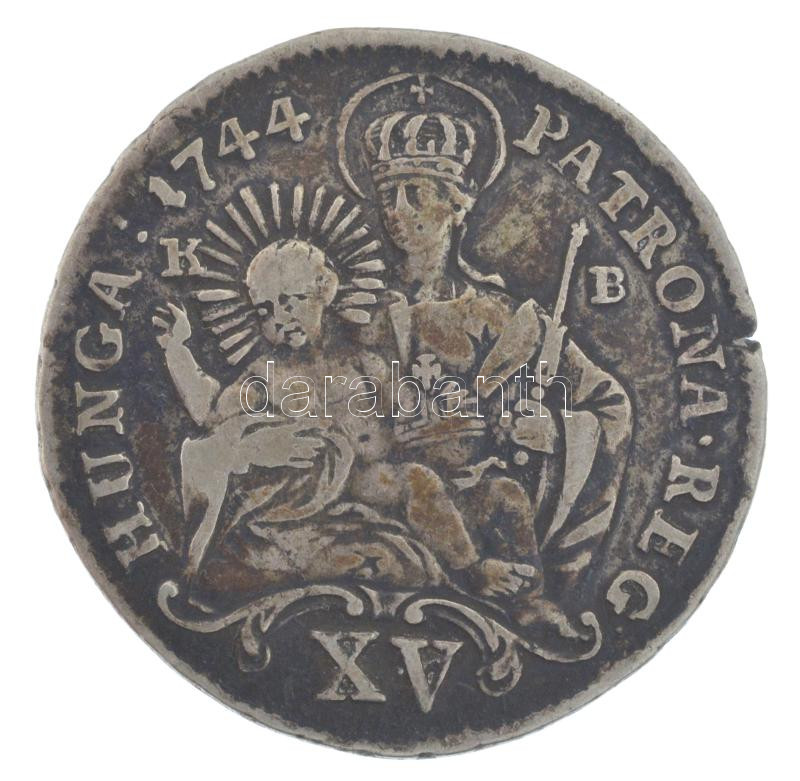 1744K-B 15kr Ag "Mária Terézia" T:VF ph., patina Hungary 1744K-B 15 Kr... https://www.darabanth.com/de/443-Fernauktion/443.0/Numismatik/Ungarische-Munzen-und-Munzen-mit-ungarischem-Munzzeichen~1500008/1744K-B-15kr-Ag-Maria-Terezia-TVF-ph-patina-Hungary-1744K-B-15-Kreuzer-Ag-Maria-Theresia-C~II2921771