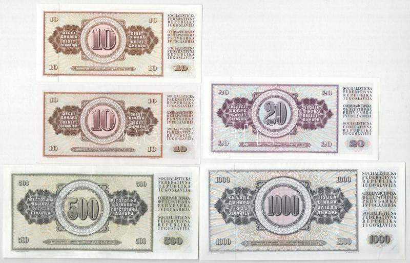 Jugoszlávia 1968. 10D (2x) + 1978. 20D + 1981. 500D + 1000D T:UNC,AU