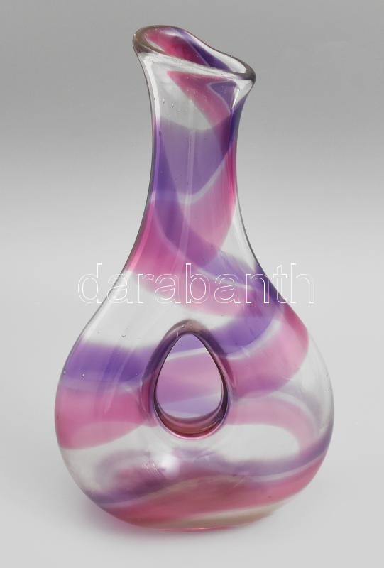 Beschreibung: Retro fátyolosan színezett lilás hutaüveg váza, jelzés nélkül, kis kopással, m: 28 cm