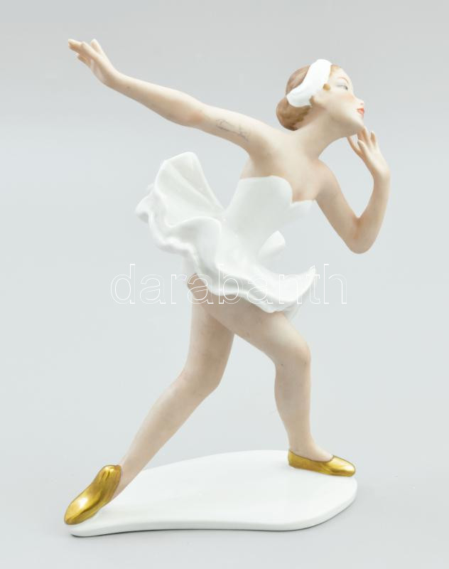 Beschreibung: Wallendorf táncoló balerina, kézzel festett, jelzett, ujja hiányzik, m: 19,5 cm