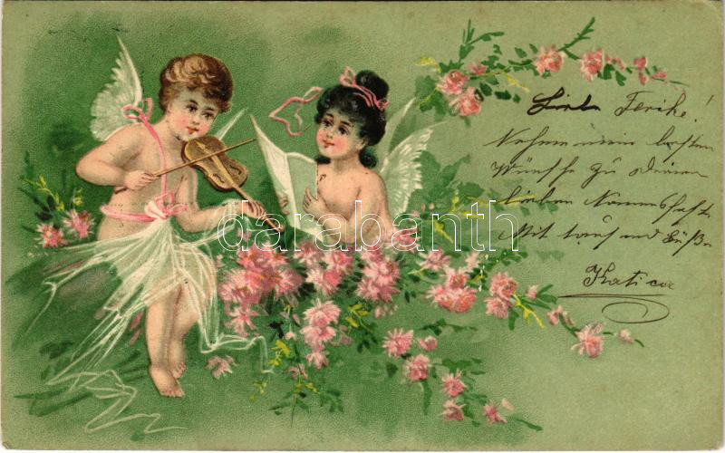 1903 Floral litho greeting card with angels (EK) https://www.darabanth.com/de/444-Fernauktion/444.0/Ansichtskarten/GruC39Fkarten-Feste~2000080/1903-Floral-litho-greeting-card-with-angels-EK~II2928367