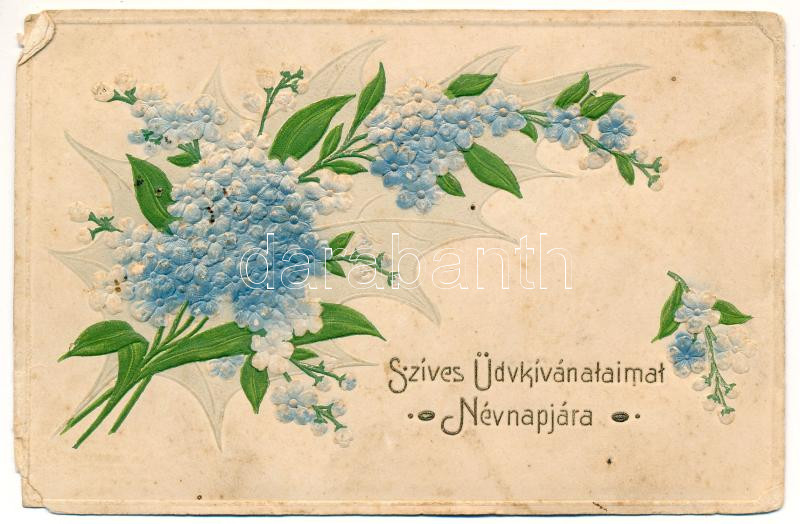 1909 Szíves üdvkívánalmaimat névnapjára / Name Day greeting art postca... https://www.darabanth.com/de/444-Fernauktion/444.0/Ansichtskarten/GruC39Fkarten-Feste~2000080/1909-Szives-udvkivanalmaimat-nevnapjara-Name-Day-greeting-art-postcard-Emb-b~II2933409
