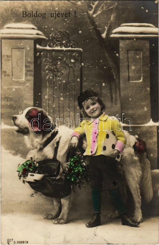 1911 Boldog Újévet / New Year greeting card with Bernhardiner dog https://www.darabanth.com/de/444-Fernauktion/444.0/Ansichtskarten/GruC39Fkarten-Feste~2000080/1911-Boldog-Ujevet-New-Year-greeting-card-with-Bernhardiner-dog~II2928375