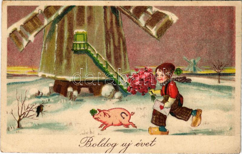 Boldog Újévet / New Year greeting art postcard with windmill, pig and ... https://www.darabanth.com/de/444-Fernauktion/444.0/Ansichtskarten/GruC39Fkarten-Feste~2000080/Boldog-Ujevet-New-Year-greeting-art-postcard-with-windmill-pig-and-clover-WSSB-9378-EB~II2931989