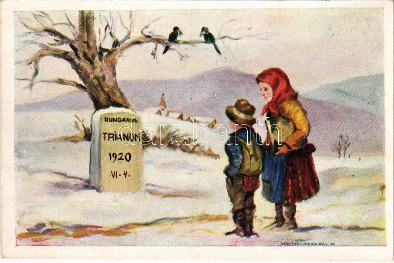Örök határjel nem lehet e kő, reméljetek, virrad a szebb jövő! Trianon. Kiadja a Magyar Nemzeti Szövetség / Hungarian irredenta propaganda art postcard s: Márton L., Nógrády M. (fa)