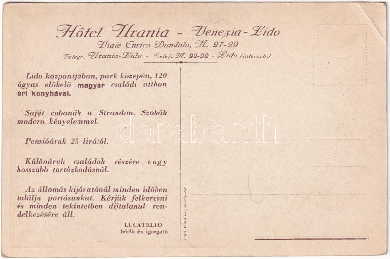 Venezia, Venice; Hotel Urania advertisement (EB) https://www.darabanth.com/de/444-Fernauktion/444.0/Ansichtskarten/Italien~2000069/Venezia-Venice-Hotel-Urania-advertisement-EB~II2935245