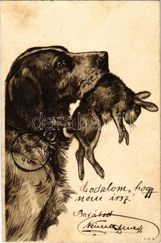 1901 Vadászkutya nyúllal. Dombornyomott litho / Hunting dog with rabbo... https://www.darabanth.com/de/444-Fernauktion/444.0/Ansichtskarten/Jagd~2000081/1901-Vadaszkutya-nyullal-Dombornyomott-litho-Hunting-dog-with-rabbot-Embossed-litho-fl~II2933876