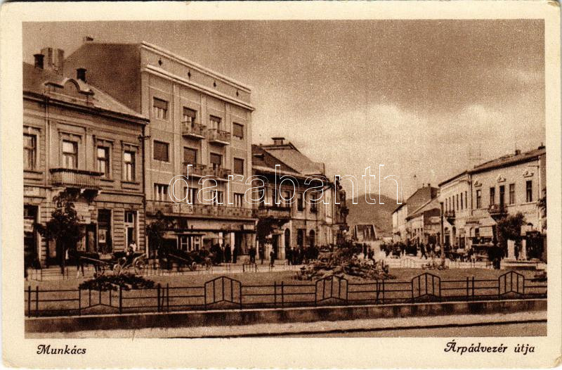 Munkács, Mukacheve, Mukachevo, Mukacevo; Árpádvezér útja / street view... https://www.darabanth.com/de/444-Fernauktion/444.0/Ansichtskarten/Karpatenukraine~2000008/Munkacs-Mukacheve-Mukachevo-Mukacevo-Arpadvezer-utja-street-view-EK~II2932680