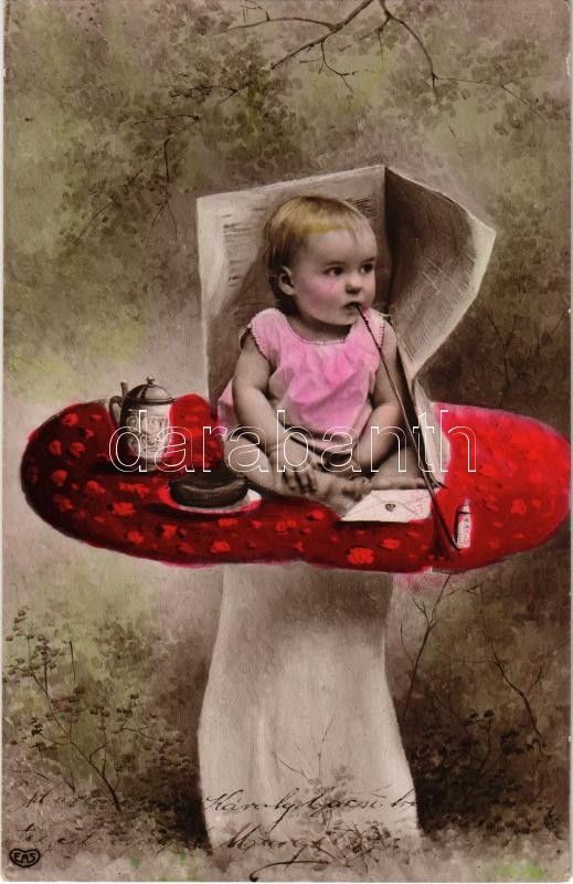 1909 Child sitting on a mushroom (EK) https://www.darabanth.com/de/444-Fernauktion/444.0/Ansichtskarten/Kinder~2000026/1909-Child-sitting-on-a-mushroom-EK~II2928353