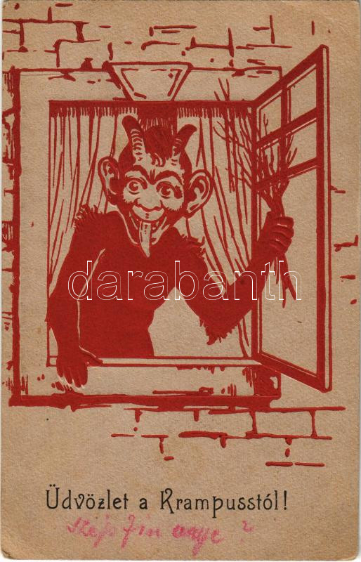 Üdvözlet a Krampusztól! Dombornyomott / Krampus embossed greeting (EK) https://www.darabanth.com/de/444-Fernauktion/444.0/Ansichtskarten/Krampus~2000048/Udvozlet-a-Krampusztol-Dombornyomott-Krampus-embossed-greeting-EK~II2932370