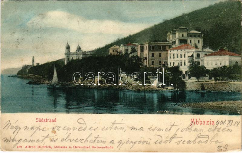 1901 Abbazia, Opatija; Südstrand / beach, villa, hotel (EK) https://www.darabanth.com/de/444-Fernauktion/444.0/Ansichtskarten/Kroatien~2000009/1901-Abbazia-Opatija-Sudstrand-beach-villa-hotel-EK~II2929482