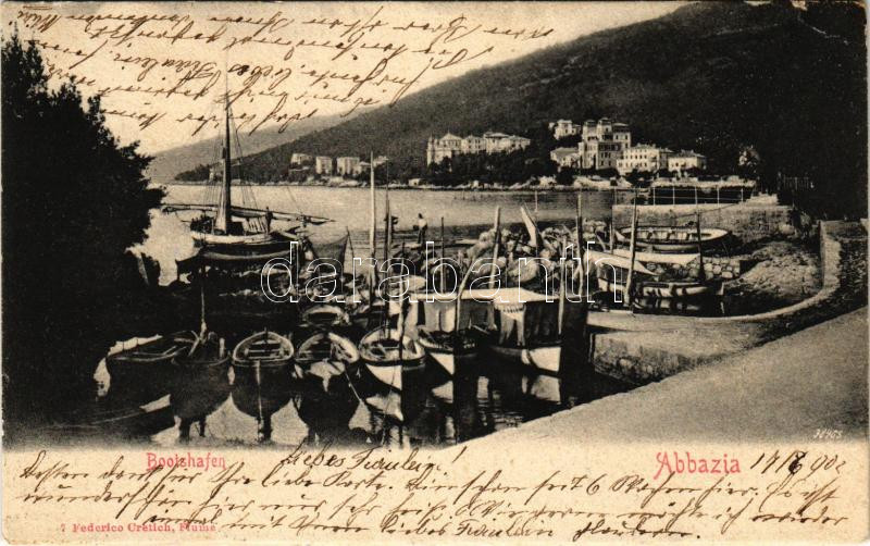 1902 Abbazia, Opatija; Bootshafen / boat harbor (EK) https://www.darabanth.com/de/444-Fernauktion/444.0/Ansichtskarten/Kroatien~2000009/1902-Abbazia-Opatija-Bootshafen-boat-harbor-EK~II2929493