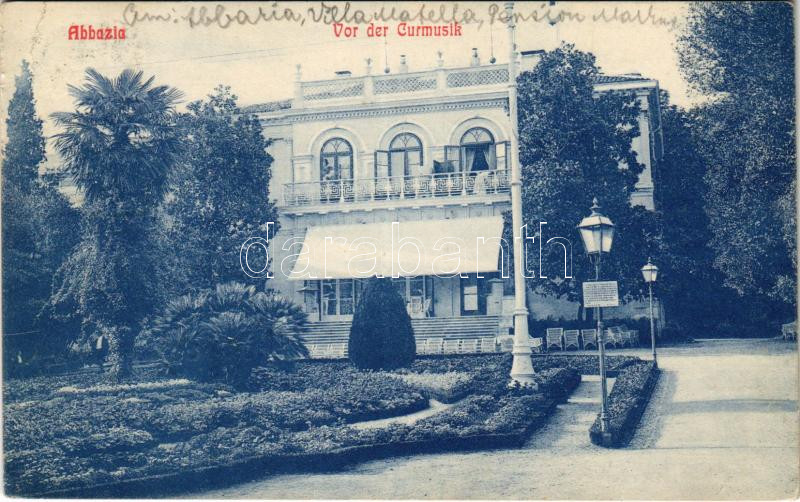 1910 Abbazia, Opatija; Vor der Curmusik (EB) https://www.darabanth.com/de/444-Fernauktion/444.0/Ansichtskarten/Kroatien~2000009/1910-Abbazia-Opatija-Vor-der-Curmusik-EB~II2929490
