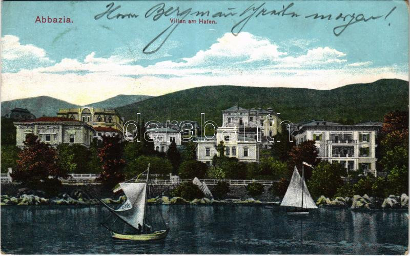1911 Abbazia, Opatija; Villen am Hafen / villas (EK) https://www.darabanth.com/de/444-Fernauktion/444.0/Ansichtskarten/Kroatien~2000009/1911-Abbazia-Opatija-Villen-am-Hafen-villas-EK~II2929487
