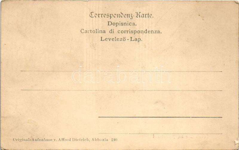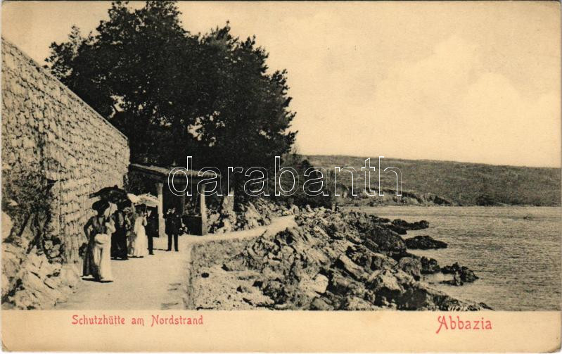 Abbazia, Opatija; Schutzhütte am Nordstrand / chalet (EK) https://www.darabanth.com/de/444-Fernauktion/444.0/Ansichtskarten/Kroatien~2000009/Abbazia-Opatija-Schutzhutte-am-Nordstrand-chalet-EK~II2929489