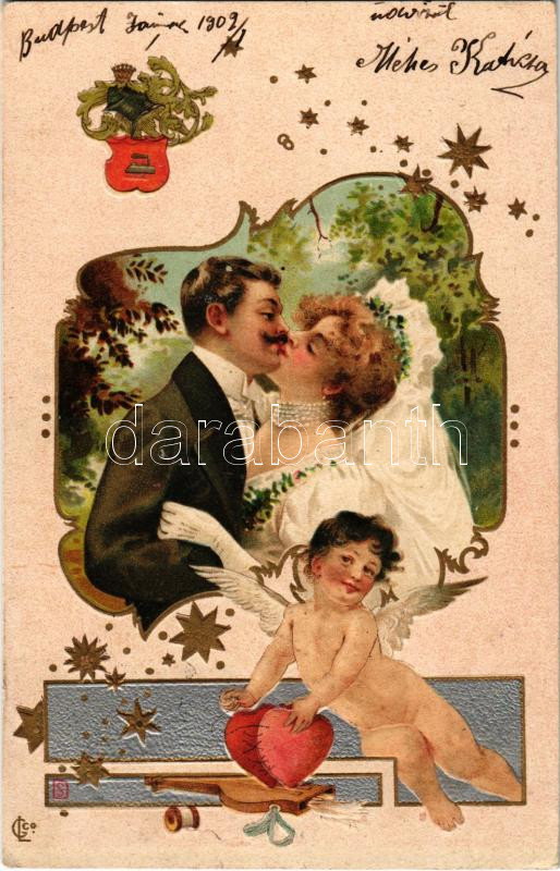 1901 Lady art postcard, wedding, kissing couple. Art Nouveau, Emb. lit... https://www.darabanth.com/de/444-Fernauktion/444.0/Ansichtskarten/Kunstlerkarten~2000057/1901-Lady-art-postcard-wedding-kissing-couple-Art-Nouveau-Emb-litho-s-R-Kratki-EK~II2931983