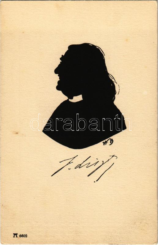 Liszt Ferenc sziluett művészlap / Franz Liszt silhouette art postcard. F. A. Ackermann's Kunstverlag Serie 661. W. Bithorn 12 Komponisten-Silhouetten s: W. B.