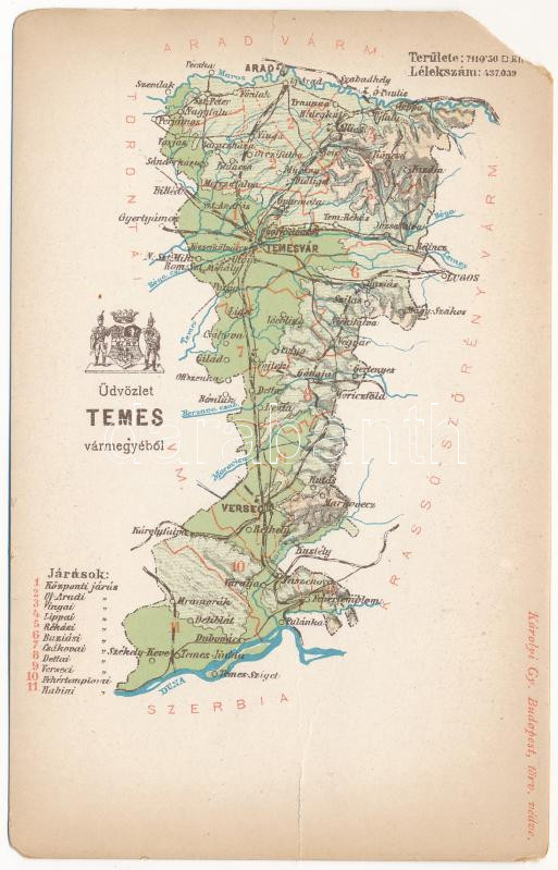 Temes vármegye térképe. Kiadja Károlyi Gy. / Map of Timis county (EM) https://www.darabanth.com/de/444-Fernauktion/444.0/Ansichtskarten/Landkarte~2000073/Temes-varmegye-terkepe-Kiadja-Karolyi-Gy-Map-of-Timis-county-EM~II2932316