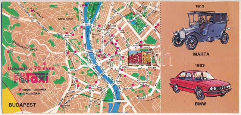 Üdvözli a 70 éves FőTaxi. Budapest térképe, 1913-as Marta és 1983-as B... https://www.darabanth.com/de/444-Fernauktion/444.0/Ansichtskarten/Landkarte~2000073/Udvozli-a-70-eves-FoTaxi-Budapest-terkepe-1913-as-Marta-es-1983-as-BMW-autok-EK~II2932897