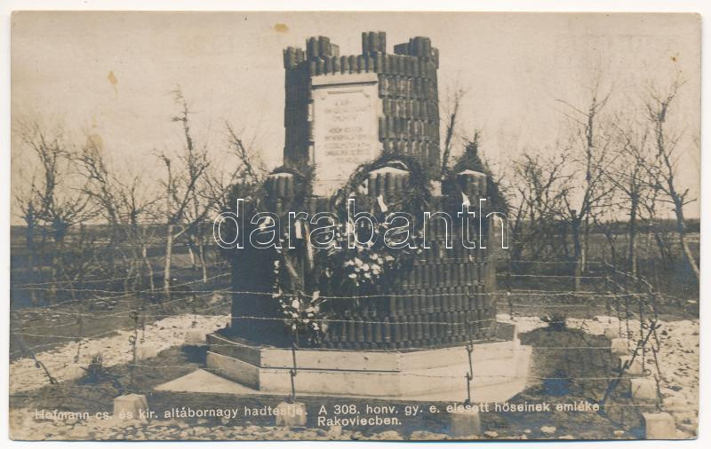 A 308. honvéd gyalogezred elesett hőseinek emléke Rakoviecben. Hofmann cs. és kir. altábornagy hadtestje. Hadifénykép Kiállítás / WWI Austro-Hungarian K.u.K. military, monument for the heroes of the 308th Hungarian infantry regiment in Rakowiec (Poland) (fl)