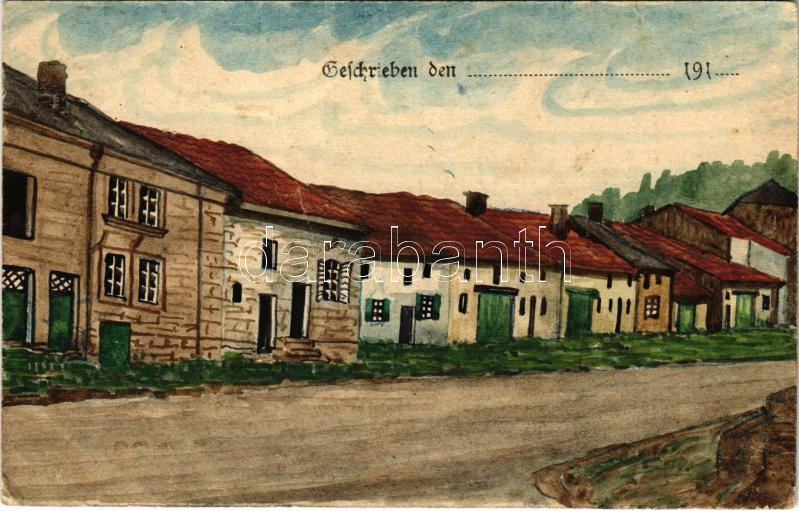 Beschreibung: Deutsche Feldpostkarte / Kézzel festett első világháborús német tábori posta / WWI German hand-painted military field post (fa)