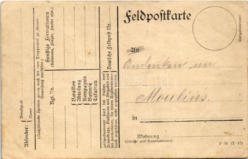 Deutsche Feldpostkarte / Kézzel festett első világháborús német tábori... https://www.darabanth.com/de/444-Fernauktion/444.0/Ansichtskarten/Militaria~2000045/Deutsche-Feldpostkarte-Kezzel-festett-elso-vilaghaborus-nemet-tabori-posta-WWI-German-han~II2932977