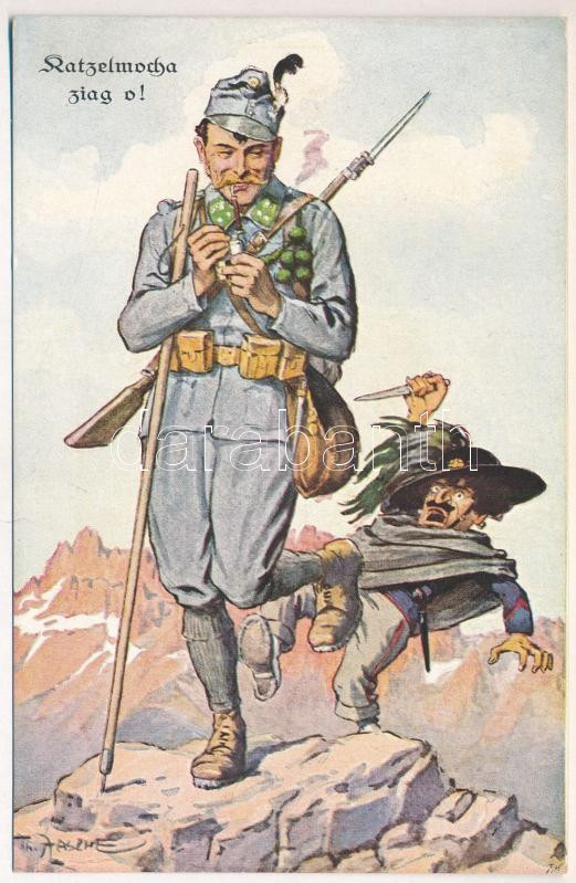 WWI Austro-Hungarian K.u.K. military art postcard, mountain infantry. ... https://www.darabanth.com/de/444-Fernauktion/444.0/Ansichtskarten/Militaria~2000045/WWI-Austro-Hungarian-KuK-military-art-postcard-mountain-infantry-M-Munk-Wien-Nr-1026-s-Th-~II2935339