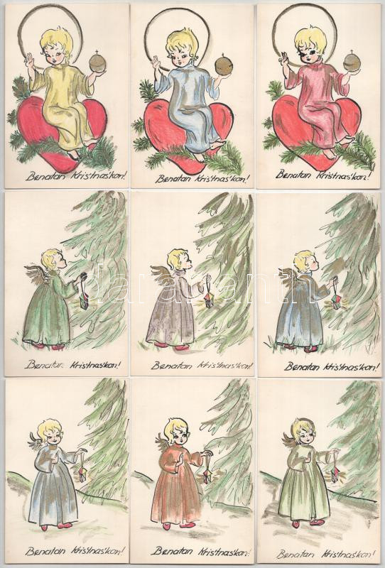 Beschreibung: 9 db MODERN képeslap tervezet: eszperantó karácsonyi üdvözlet / 9 modern postcard designs: Esperanto Christmas greetings