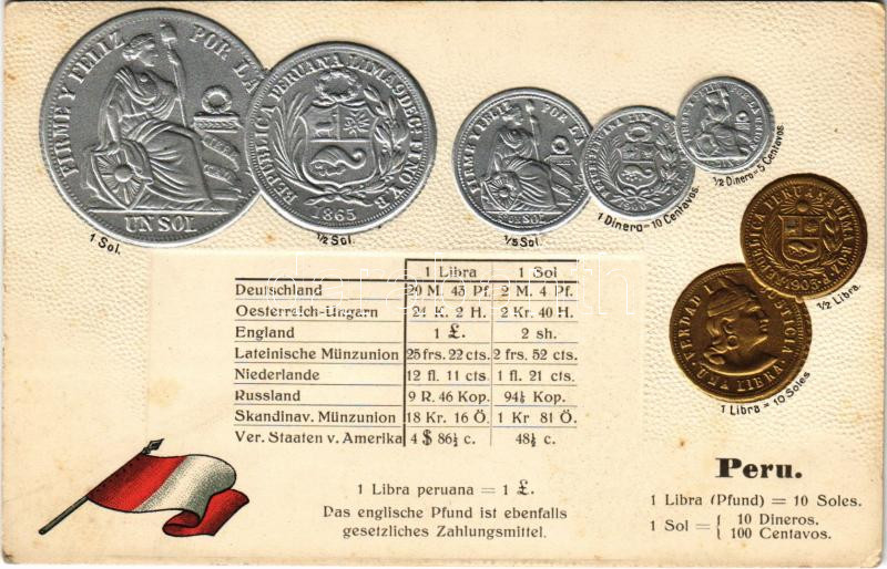Peru / Peruvian set of coins and flag. M. H. Berlin-Schbg. Emb. litho ... https://www.darabanth.com/de/444-Fernauktion/444.0/Ansichtskarten/Numismatik~2000059/Peru-Peruvian-set-of-coins-and-flag-M-H-Berlin-Schbg-Emb-litho-lyuk-pinhole~II2928287