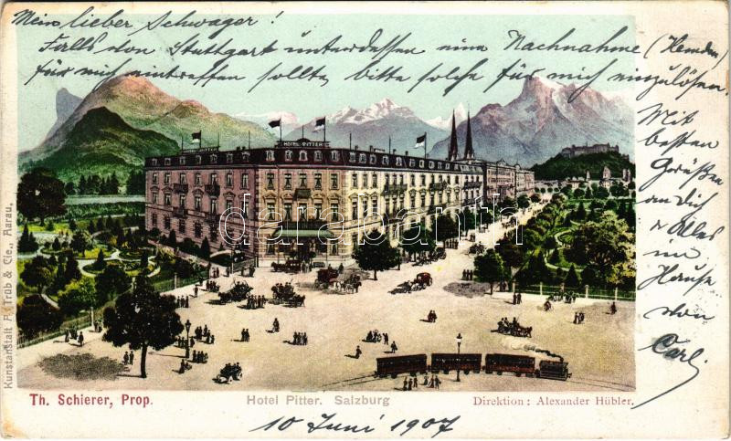 1907 Salzburg, Hotel Pitter (small tear) https://www.darabanth.com/de/444-Fernauktion/444.0/Ansichtskarten/Osterreich~2000031/1907-Salzburg-Hotel-Pitter-small-tear~II2886594