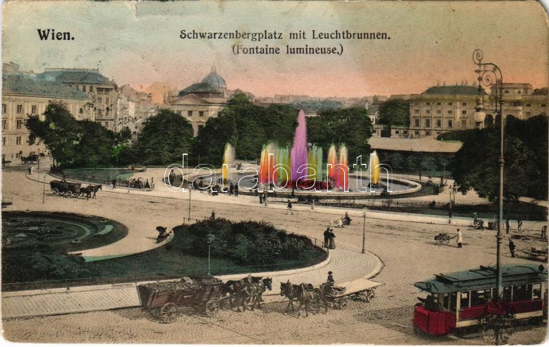 1907 Wien, Vienna, Bécs; Schwarzenbergplatz mit Leuchtbrunnen (Fontain... https://www.darabanth.com/de/444-Fernauktion/444.0/Ansichtskarten/Osterreich~2000031/1907-Wien-Vienna-Becs-Schwarzenbergplatz-mit-Leuchtbrunnen-Fontaine-lumineuse-square-tram-~II2902793