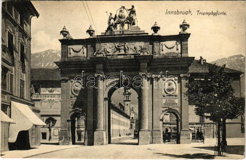 1918 Innsbruck (Tirol), Trumphporte / triumphal gate, tram (EK) https://www.darabanth.com/de/444-Fernauktion/444.0/Ansichtskarten/Osterreich~2000031/1918-Innsbruck-Tirol-Trumphporte-triumphal-gate-tram-EK~II2933439