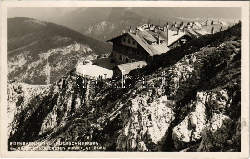 1939 Schneeberg, Eisenbahnhotel Hochschneeberg / hotel https://www.darabanth.com/de/444-Fernauktion/444.0/Ansichtskarten/Osterreich~2000031/1939-Schneeberg-Eisenbahnhotel-Hochschneeberg-hotel~II2934327