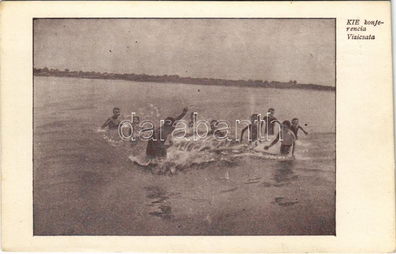 1929 KIE konferencia, vízi csata , Üdvözlet a Keresztyén Ifjúsági Egyesület konferenciáiról / Hungarian Christian Youth Association propaganda, scouts in the water