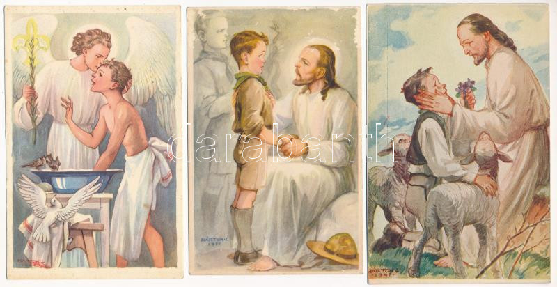 Beschreibung: 3 db RÉGI Márton L. cserkész képeslap / 3 pre-1945 Hungarian boy scout art postcards